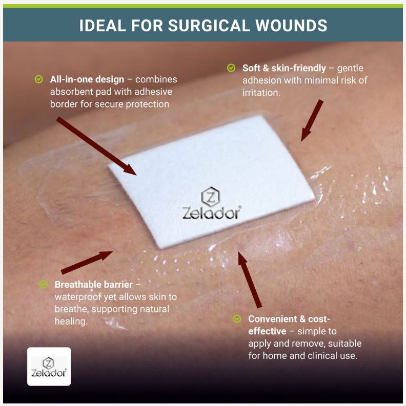 One way stretch water repellent dressing, latex free ideal for low to moderate exuding wounds