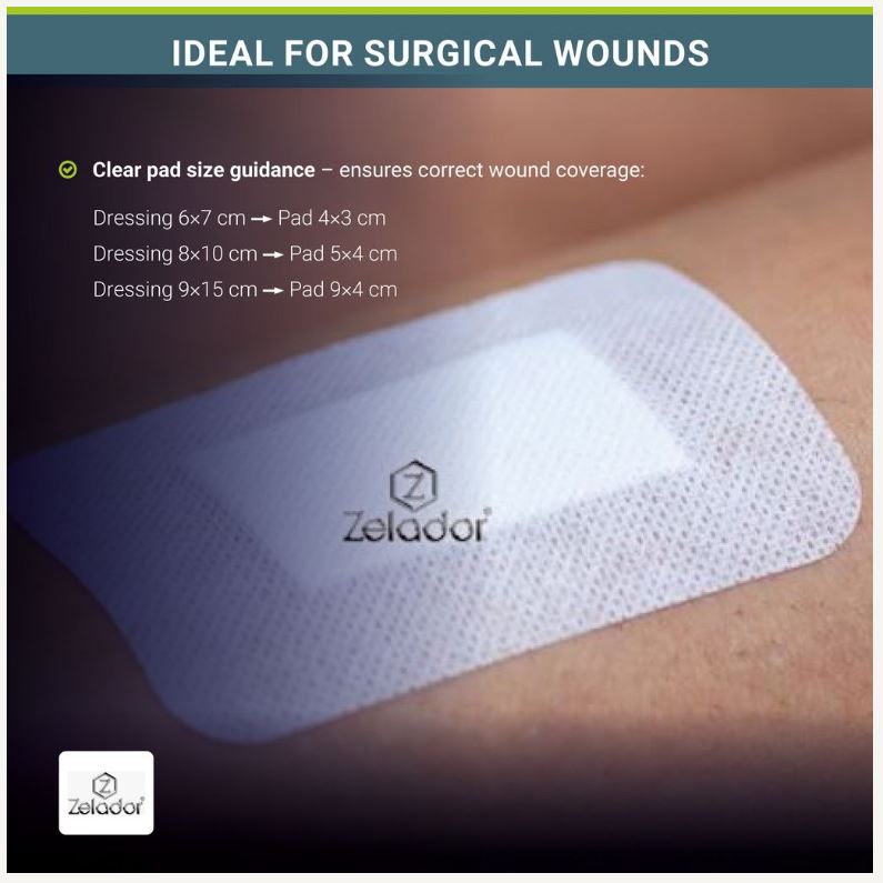 Adhesive border is approximately 2cm wide with the absorbent pad making up the rest of the size